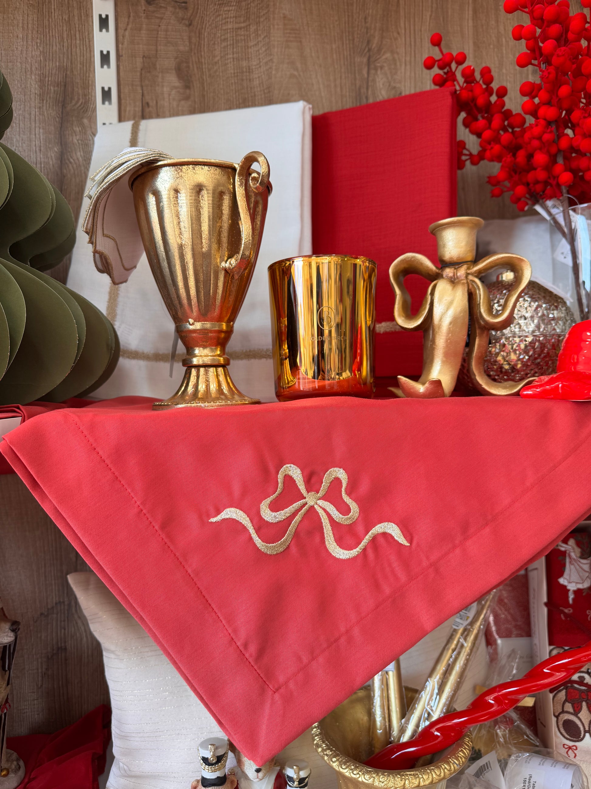 CENTROTAVOLA FIOCCO IN RASTAELLO DI COTONE BORDEAUX CON RICAMO ORO AI 2 LATI.