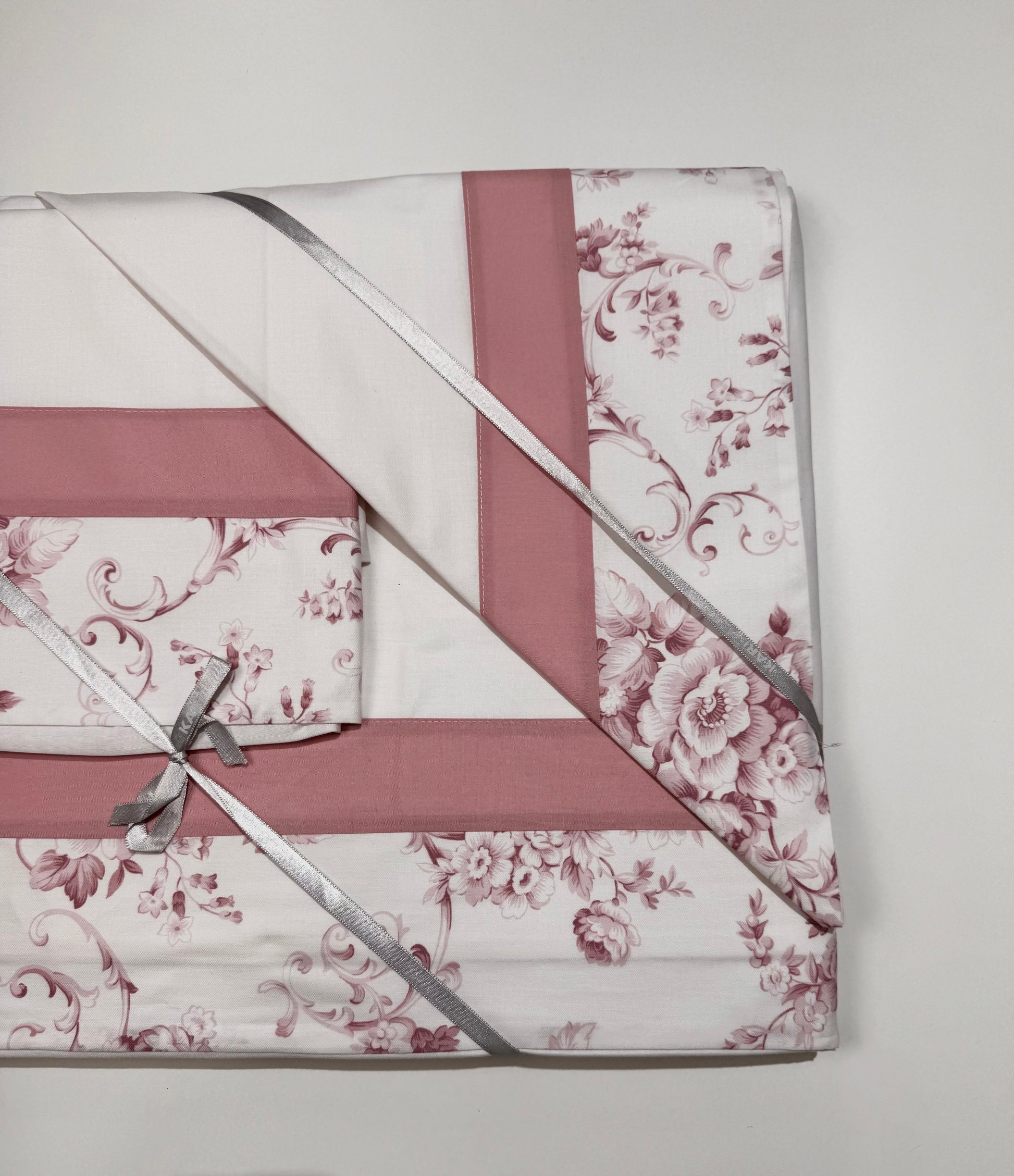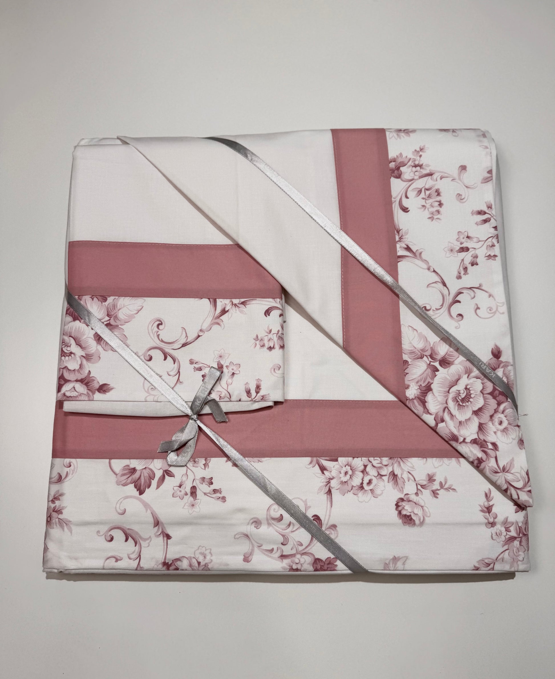 Completo letto Pisa in 100% cotone, con balza a fantasia.