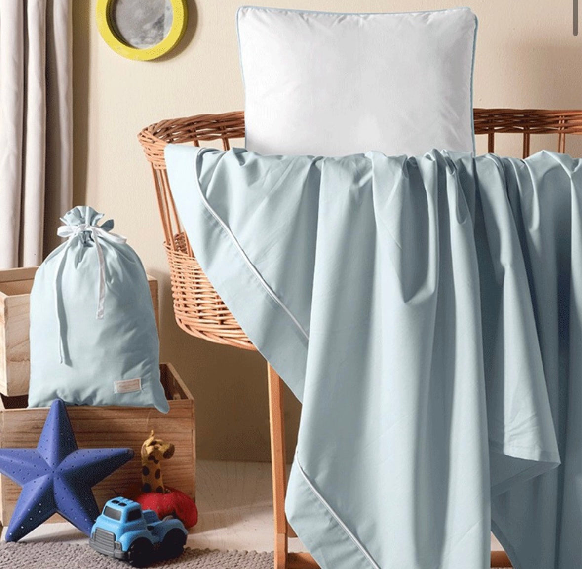Abbinato alle lenzuola trovi l'utilissimo ed elegante sacchetto per il primo cambio.
