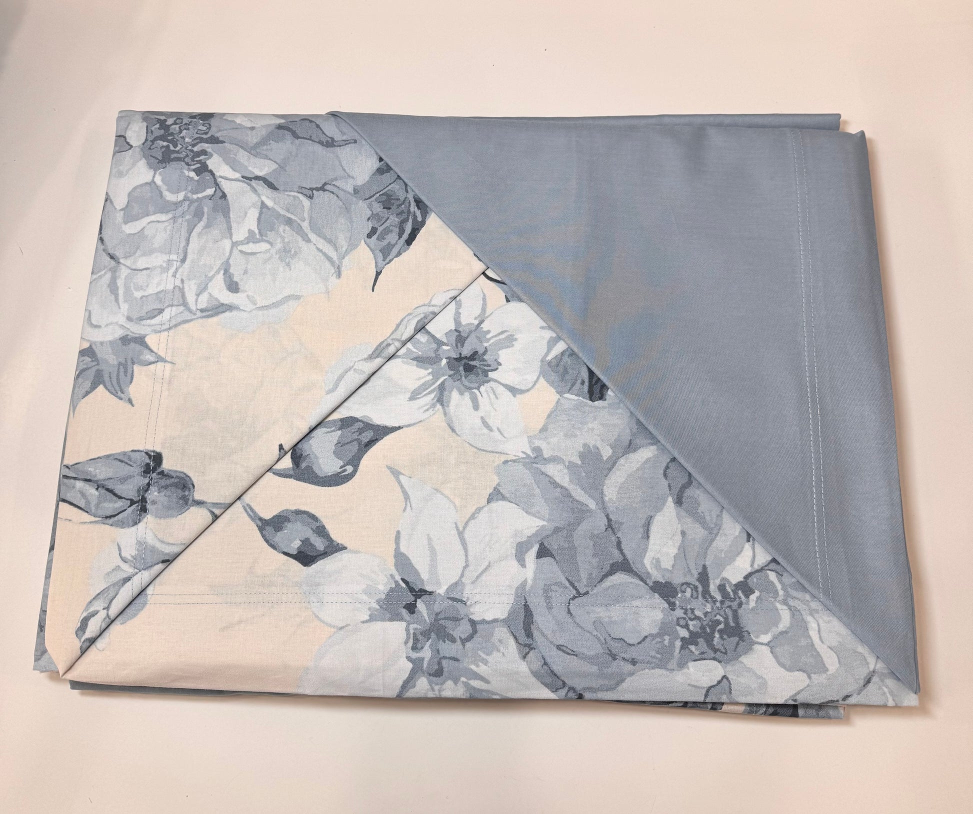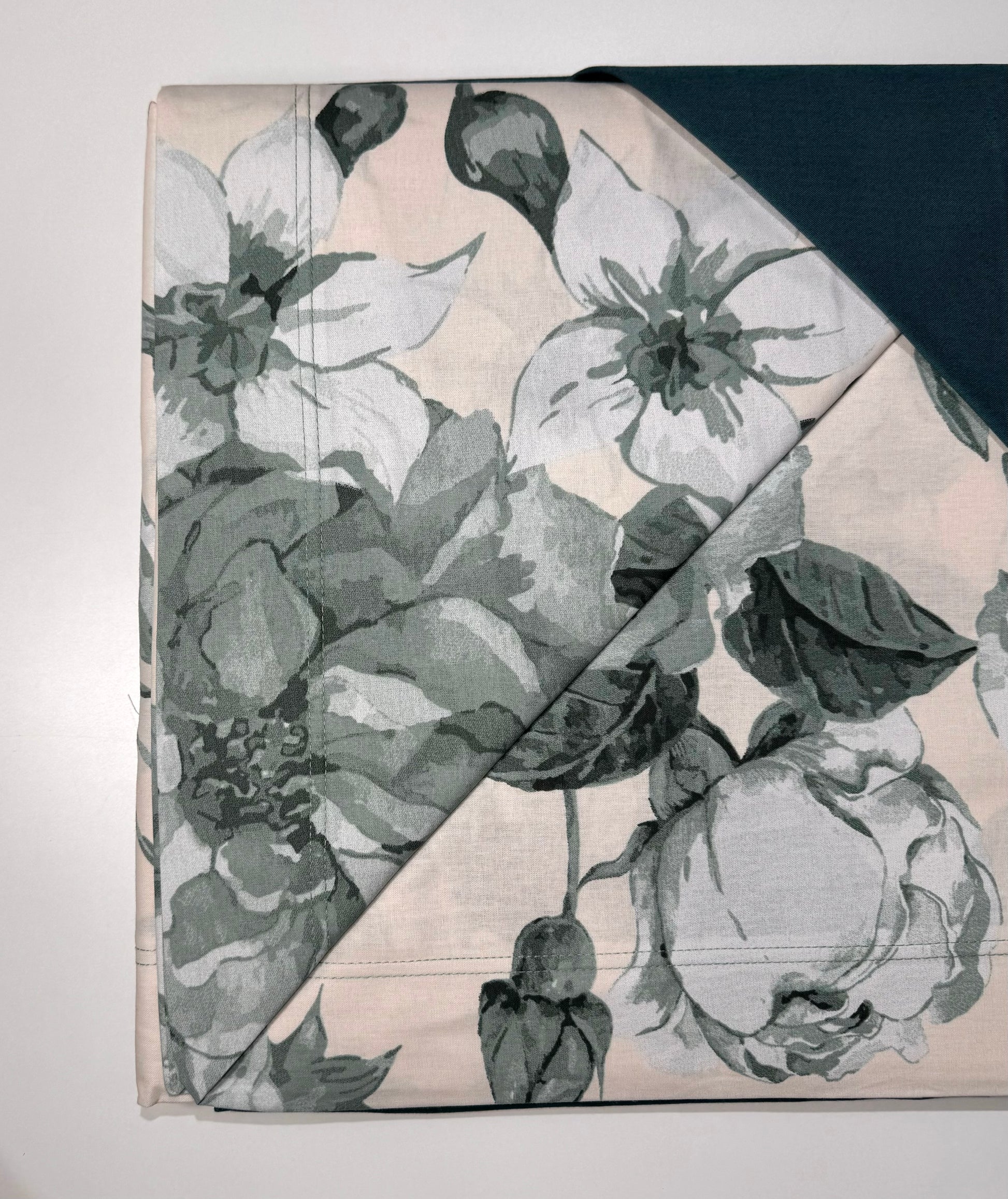 il lenzuolo di sopra invece è realizzato in una stampa floreale.