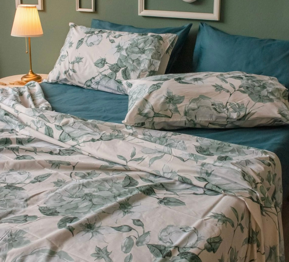 il set comprende quattro federe, di cui due fantasia e due a tinta unita coordinate al lenzuolo di sotto.