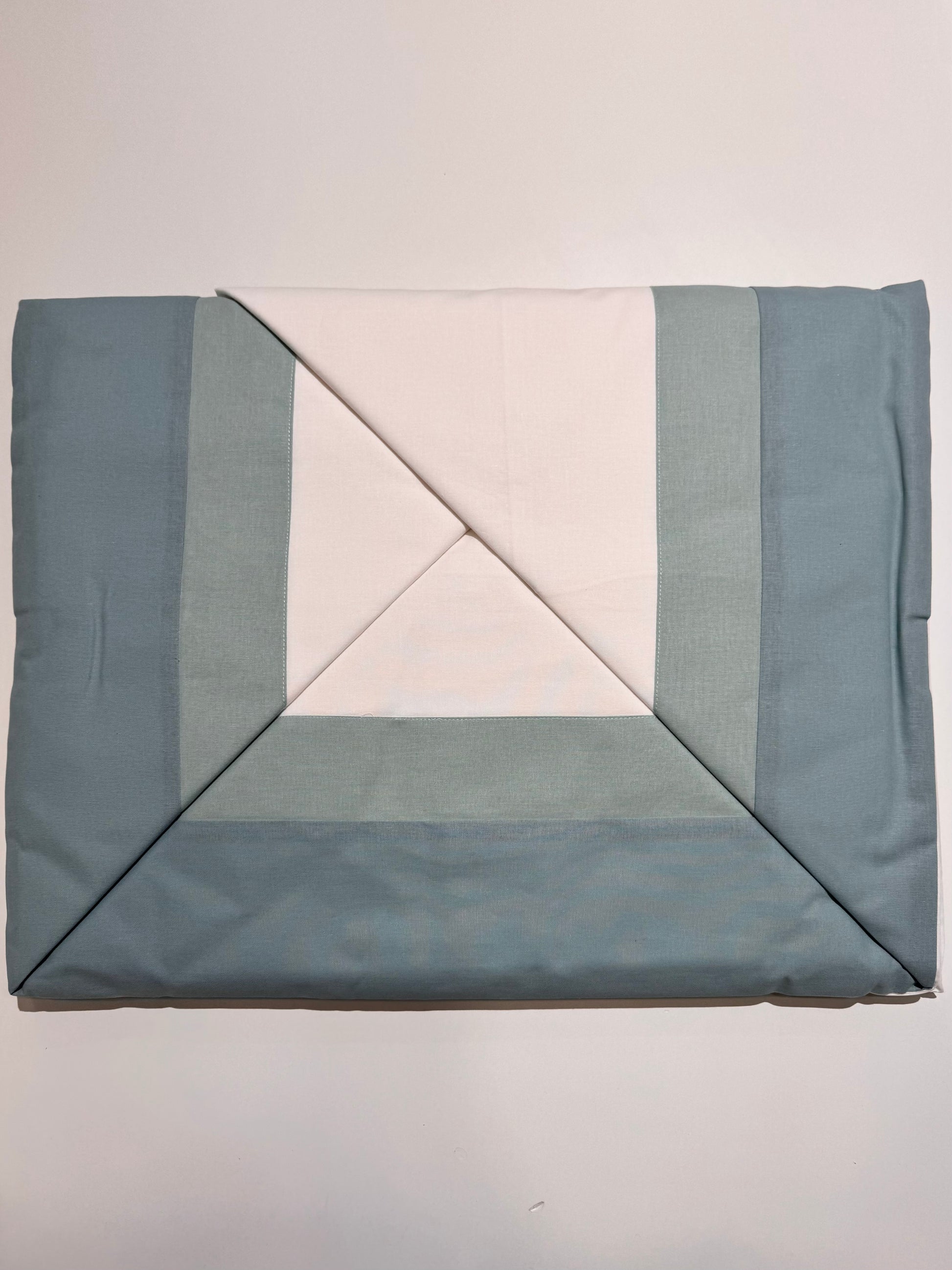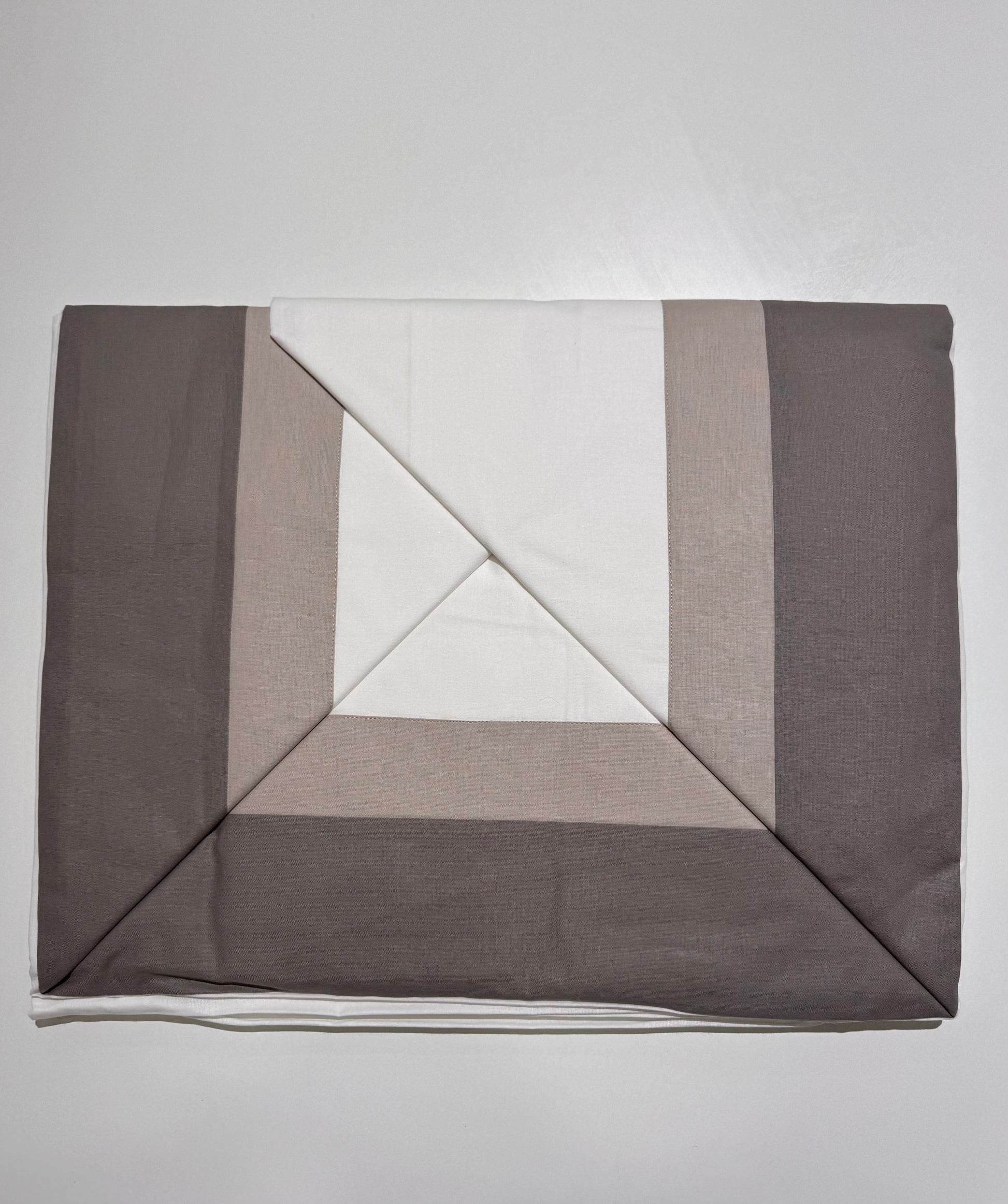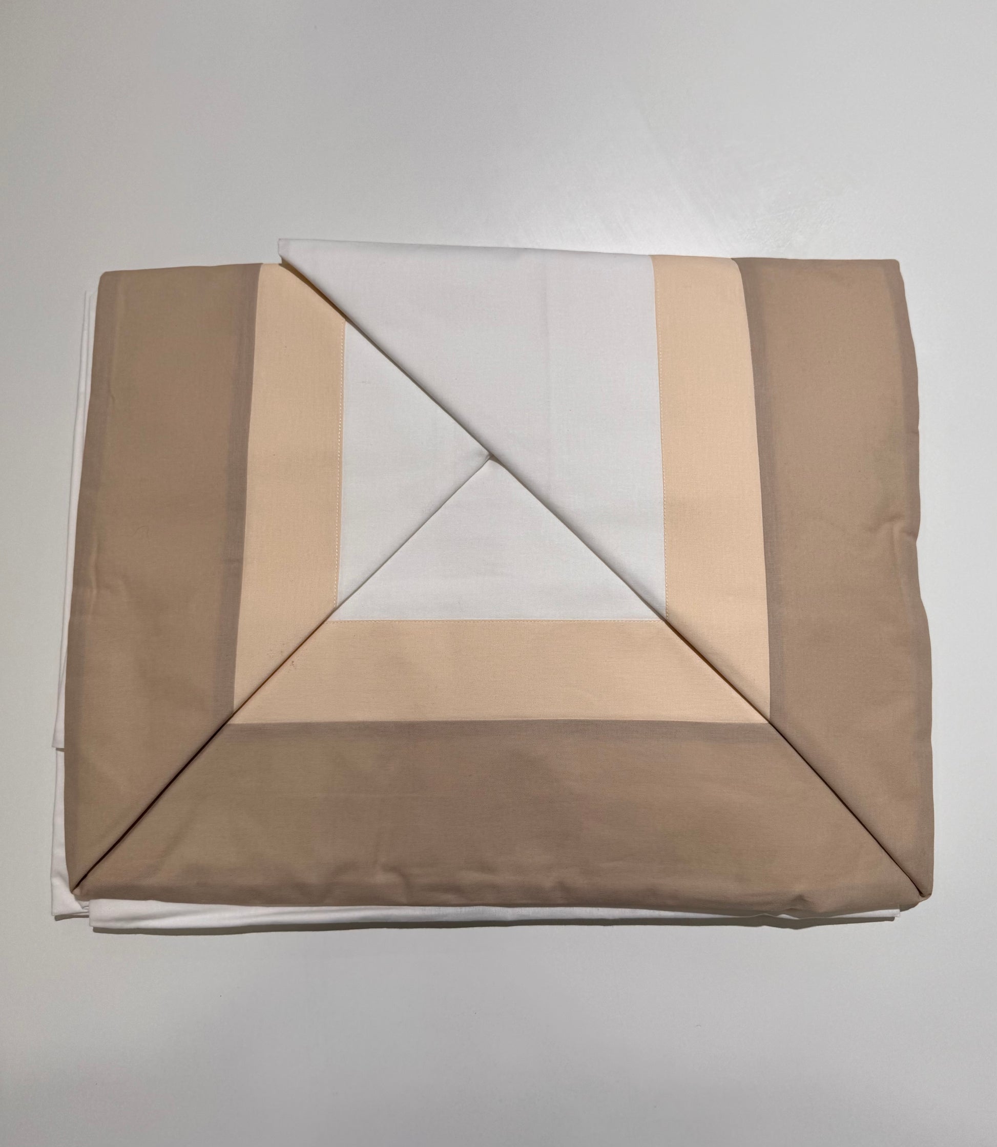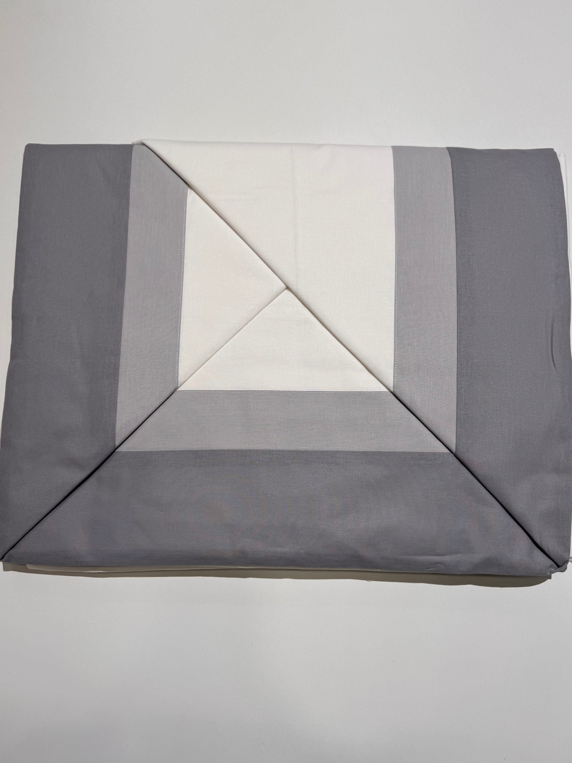 Composta da una doppia balza sul lenzuola di sopra e le due federe, il sotto tinta unita.