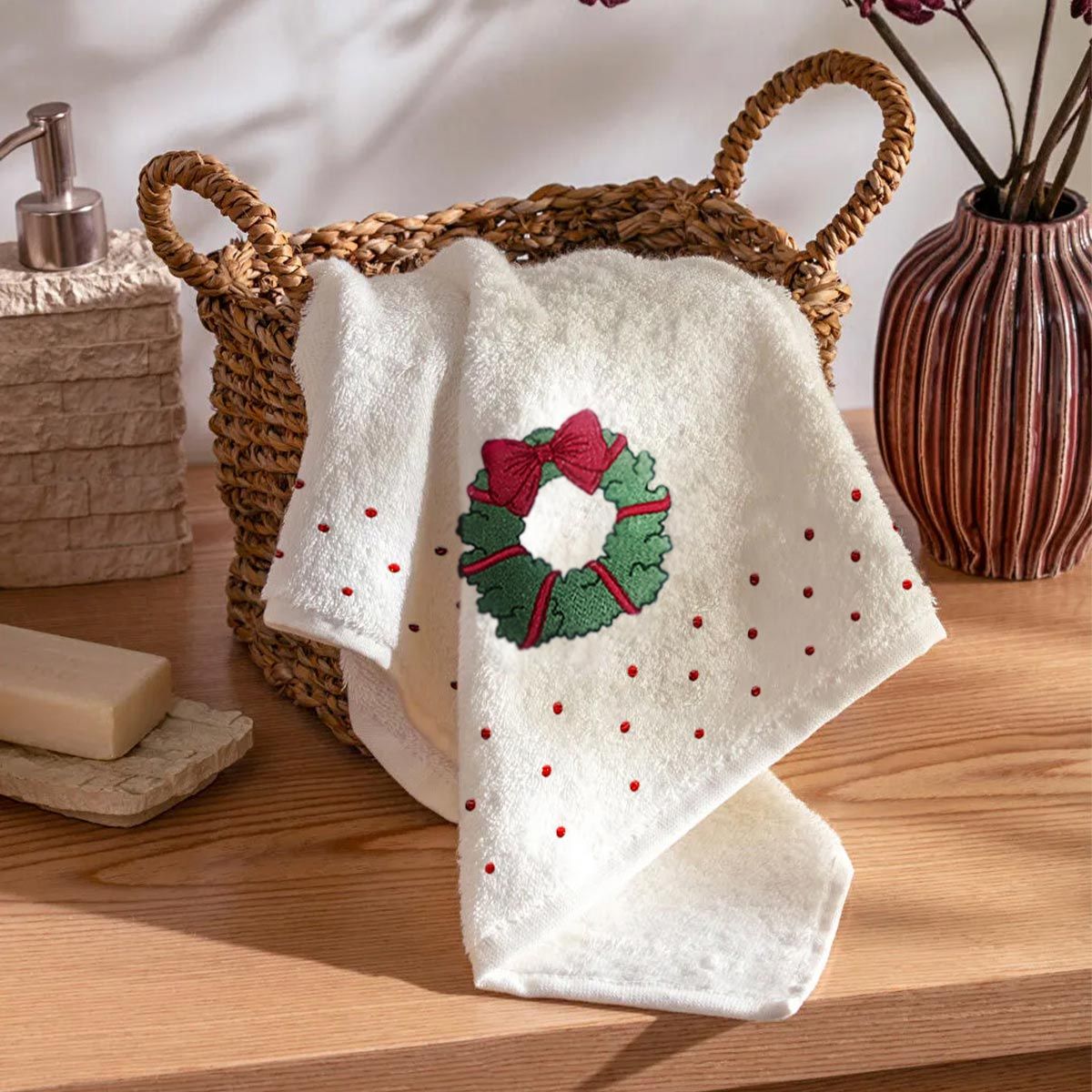 Dona eleganza e atmosfera natalizia al bagno con il set Ghirlanda di Maestri Cotonieri Home. Realizzati in morbida spugna di cotone idrofila, asciugamano e ospite offrono comfort, assorbenza e delicatezza sulla pelle. Il ricamo con piccola ghirlanda di Natale aggiunge un tocco festoso e raffinato. Confezionato in una busta rigida bordeaux, è un’idea regalo elegante e subito pronta da donare.