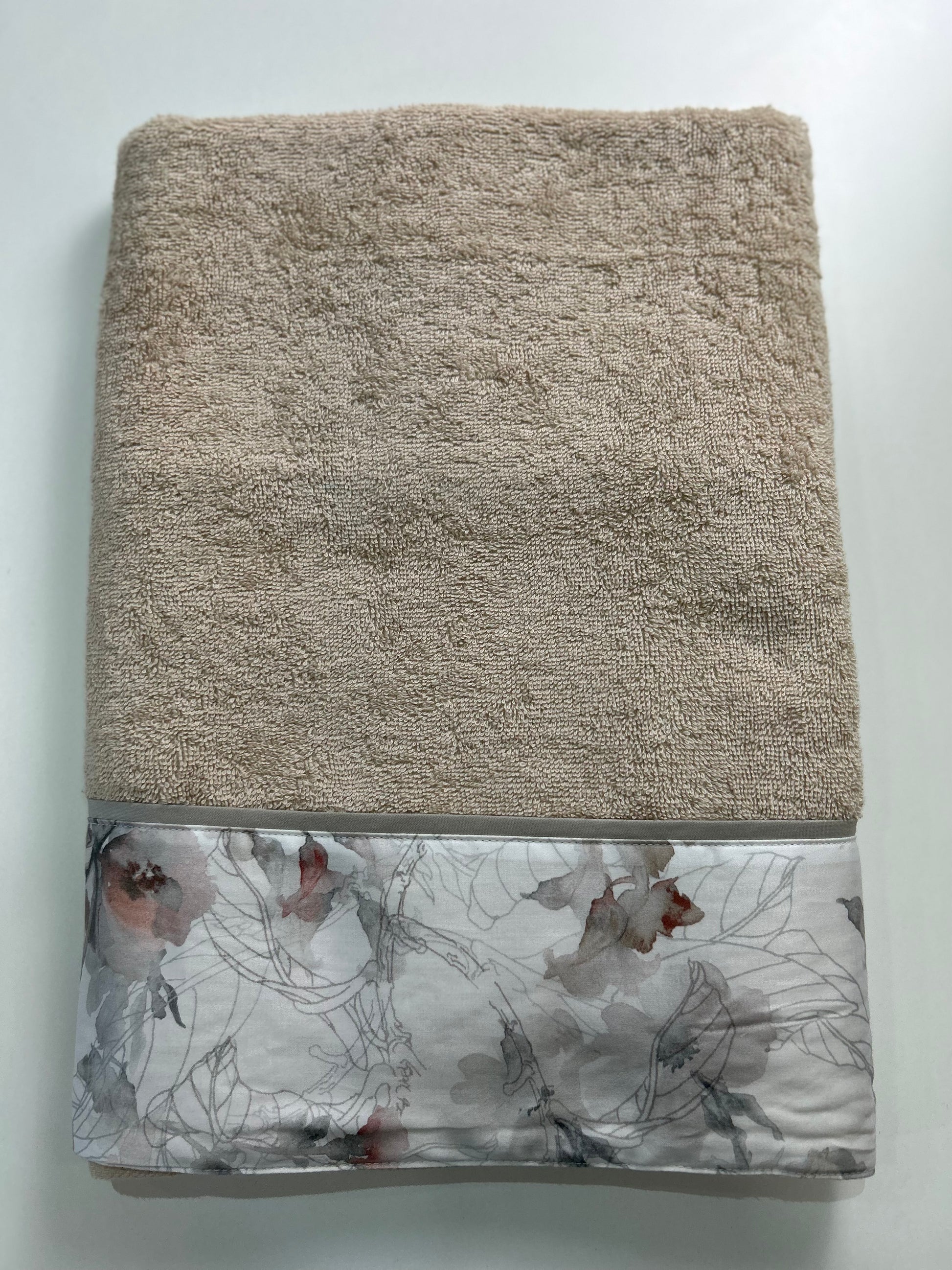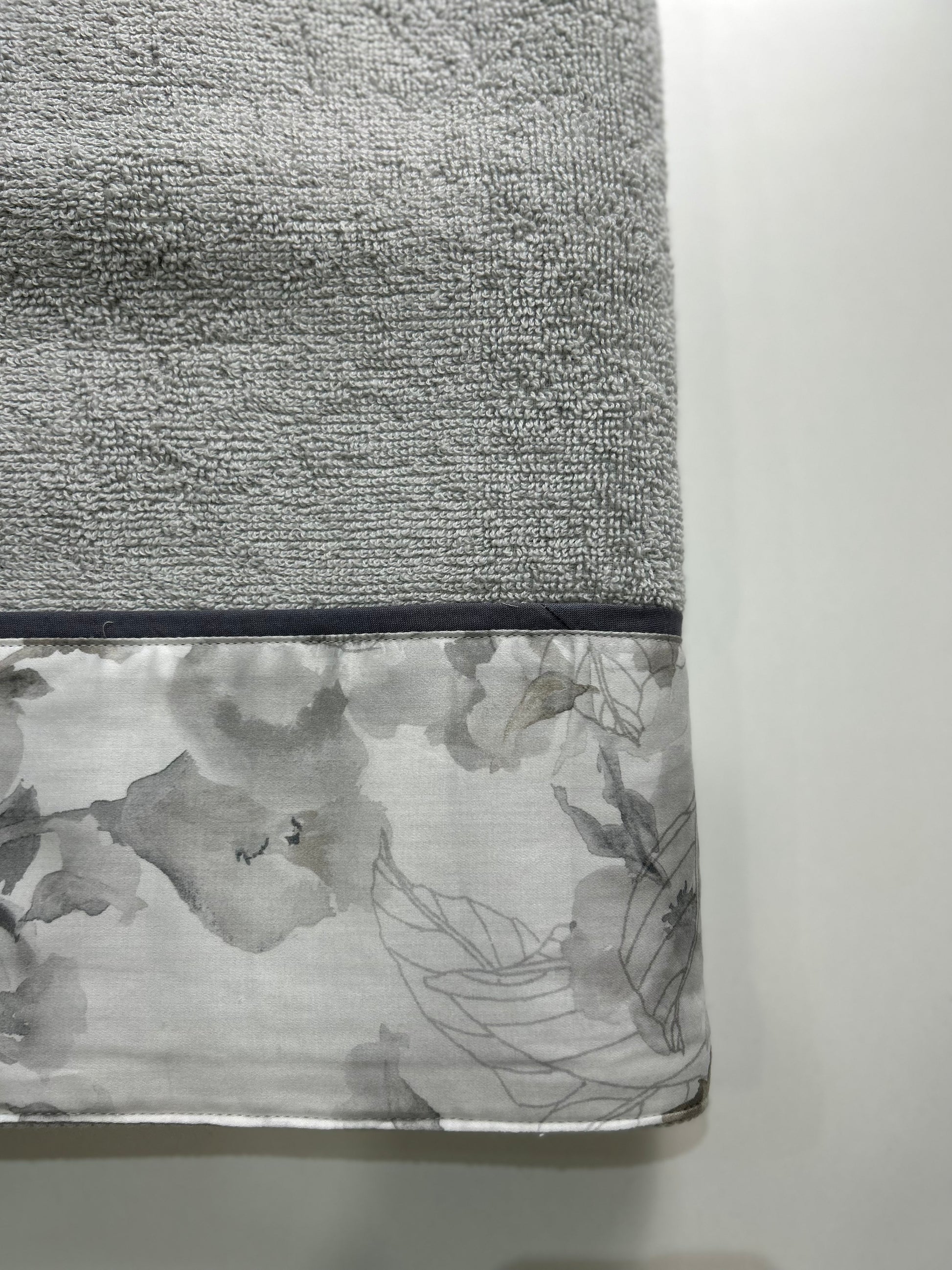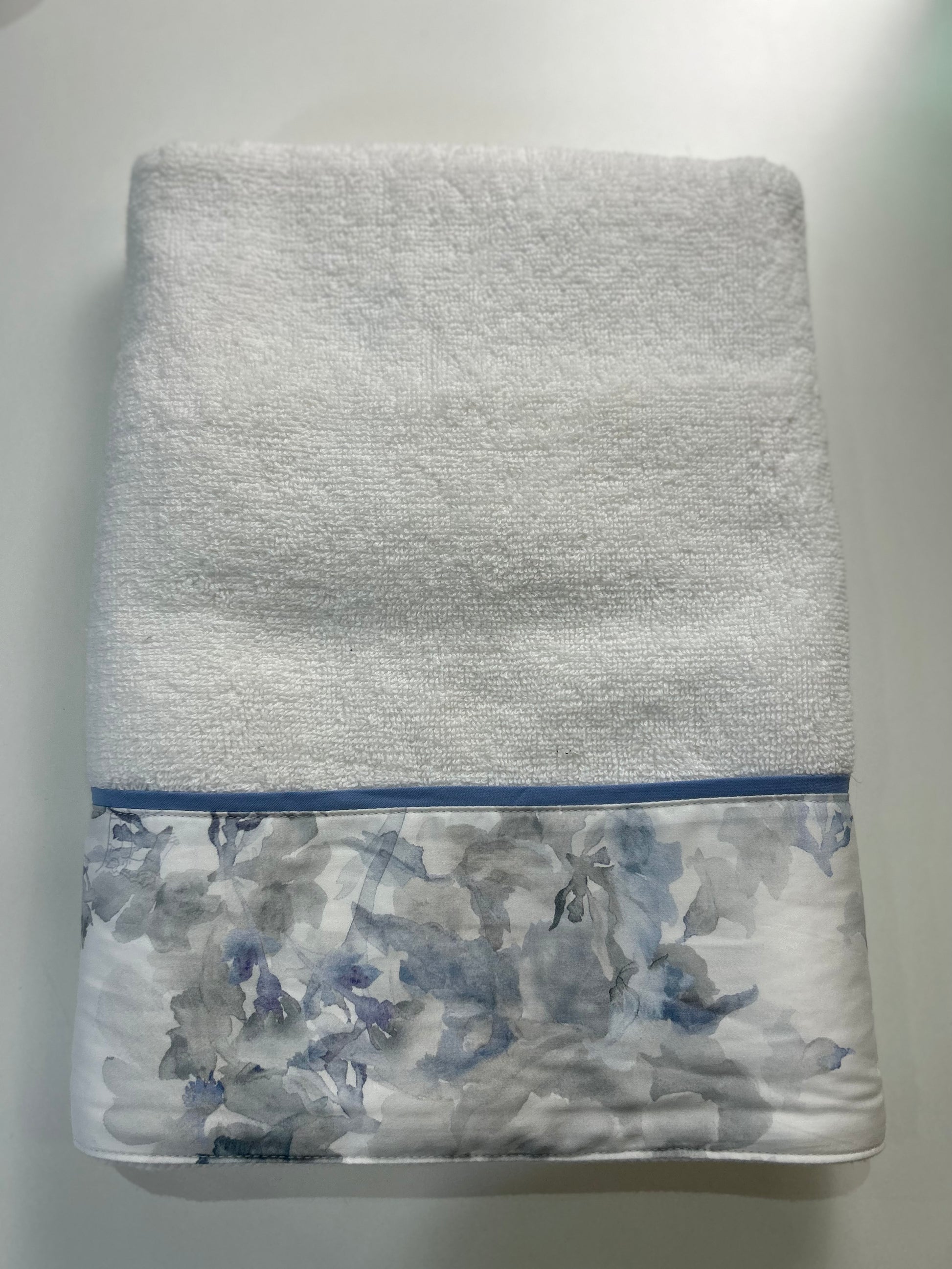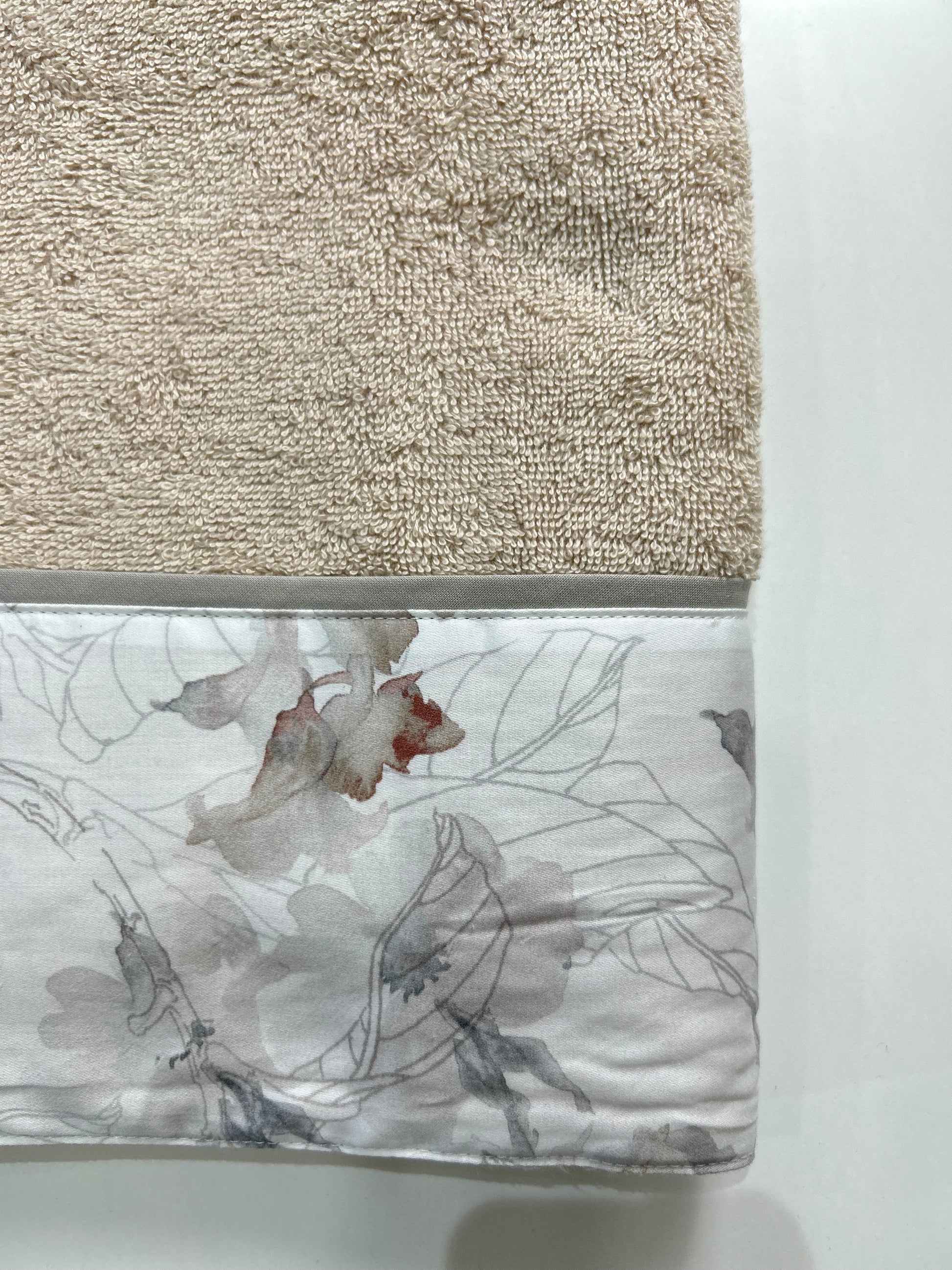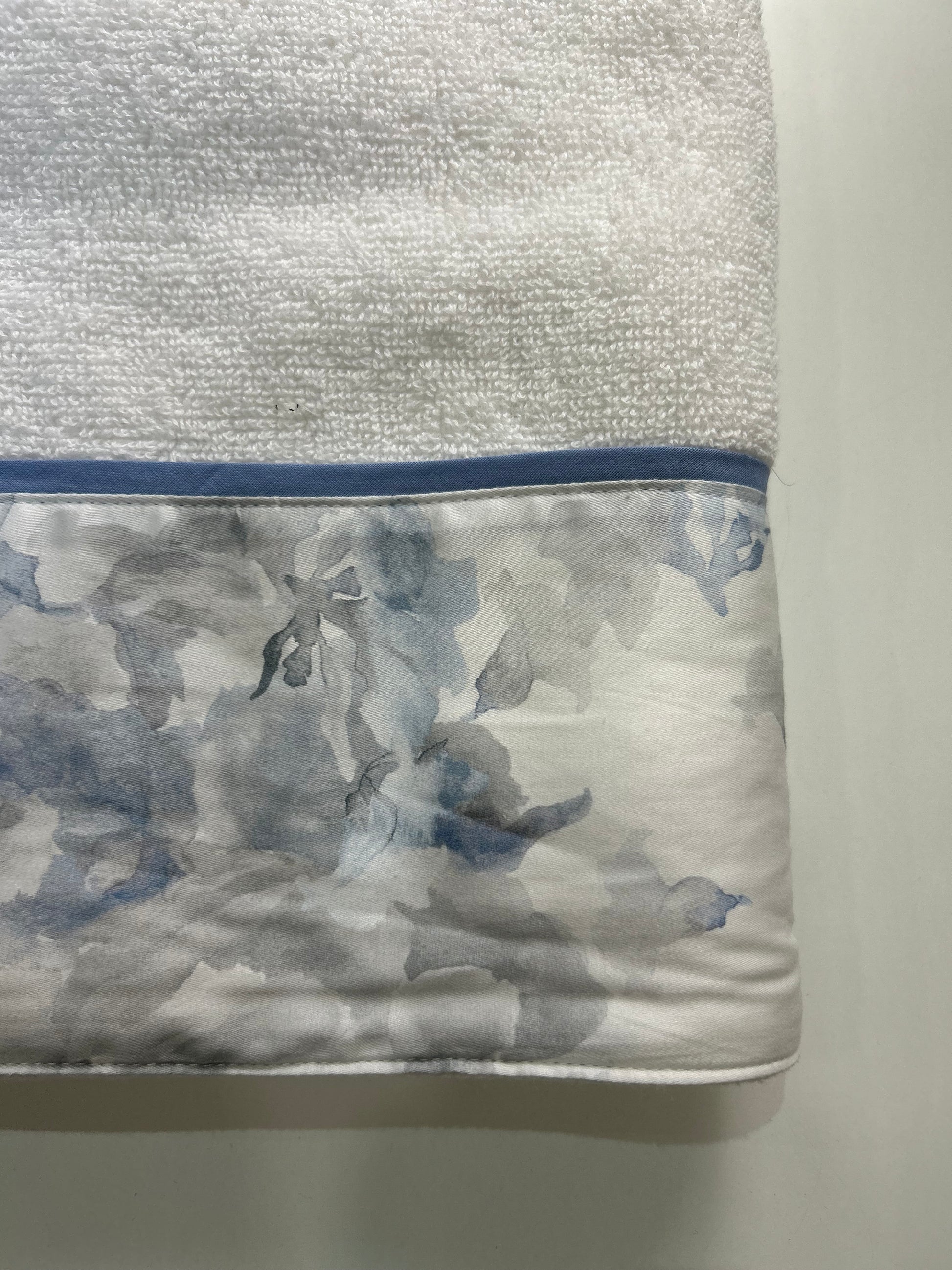 Ospite e viso magnolia tinta unita con balza a fantasia in 100% cotone.