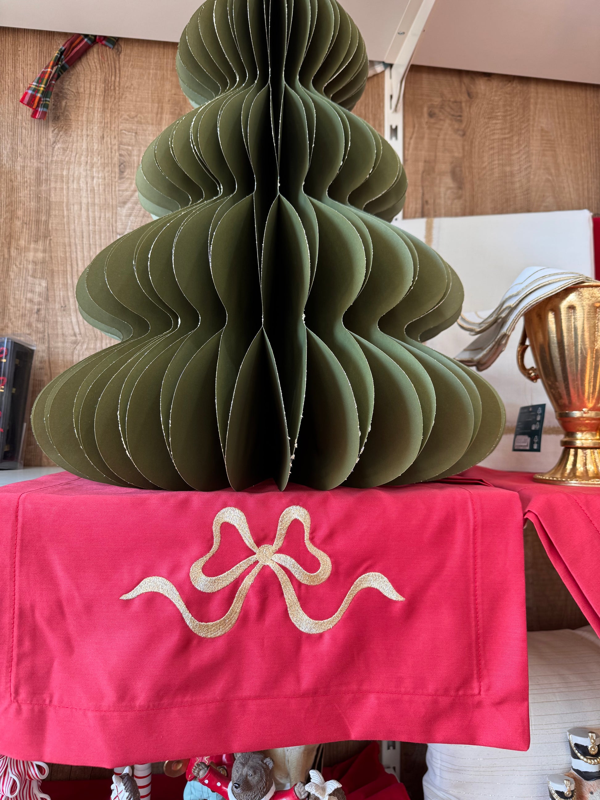 RUNNER BODEAUX IN RASATELLO DI COTONE CON RICAMO FIOCCO ORO AI DUE LATI.