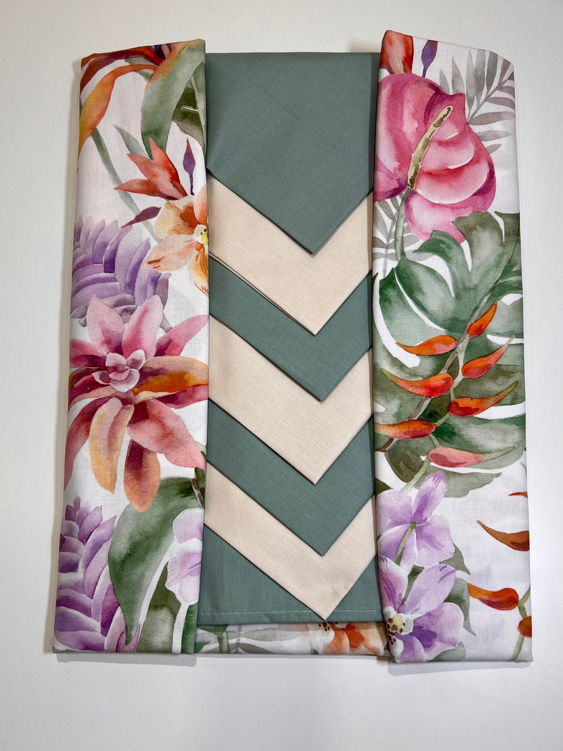 Il servizio palme ricca di colori primaverili in 100% cotone comprensiva di tovaglioli.