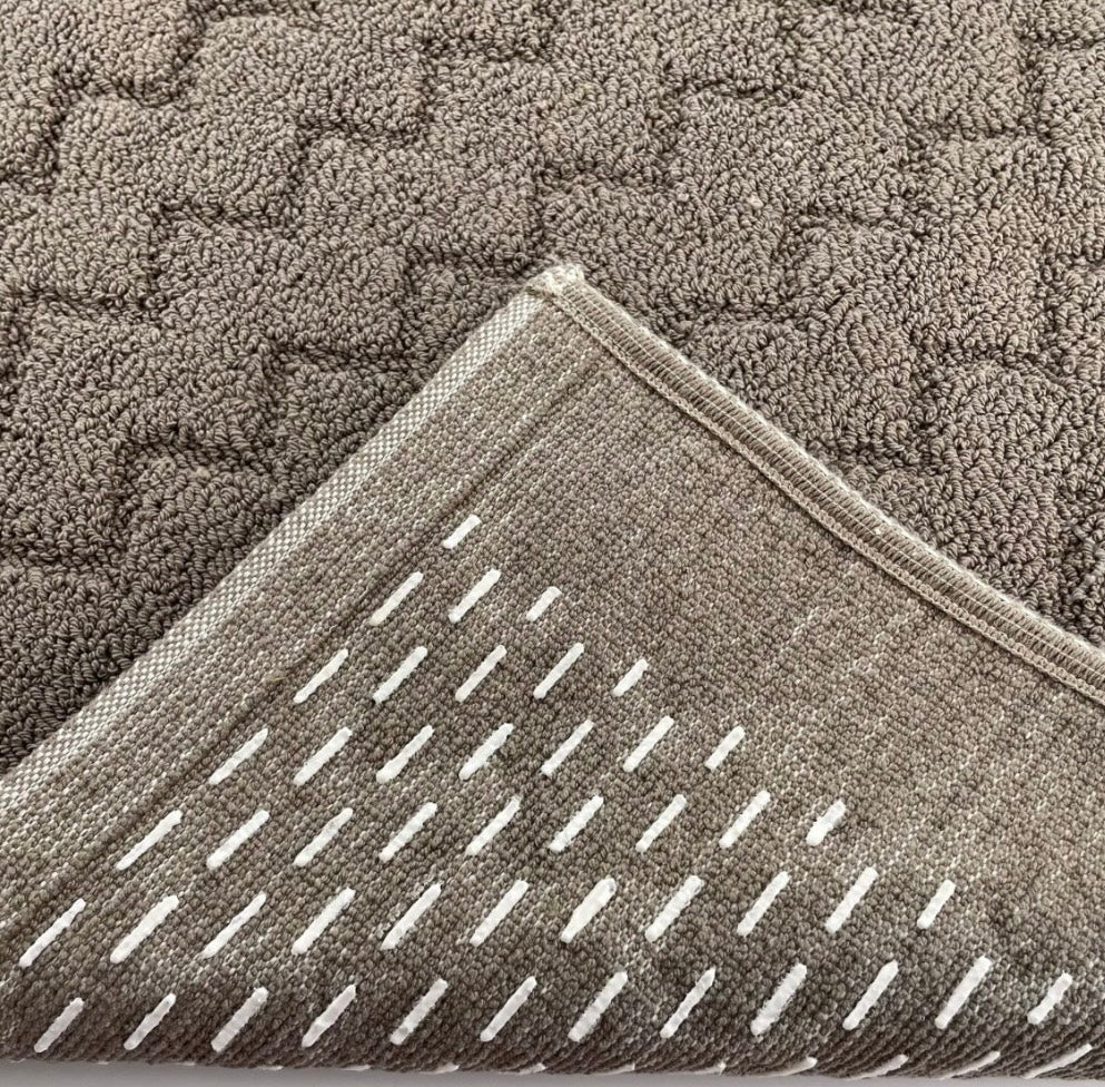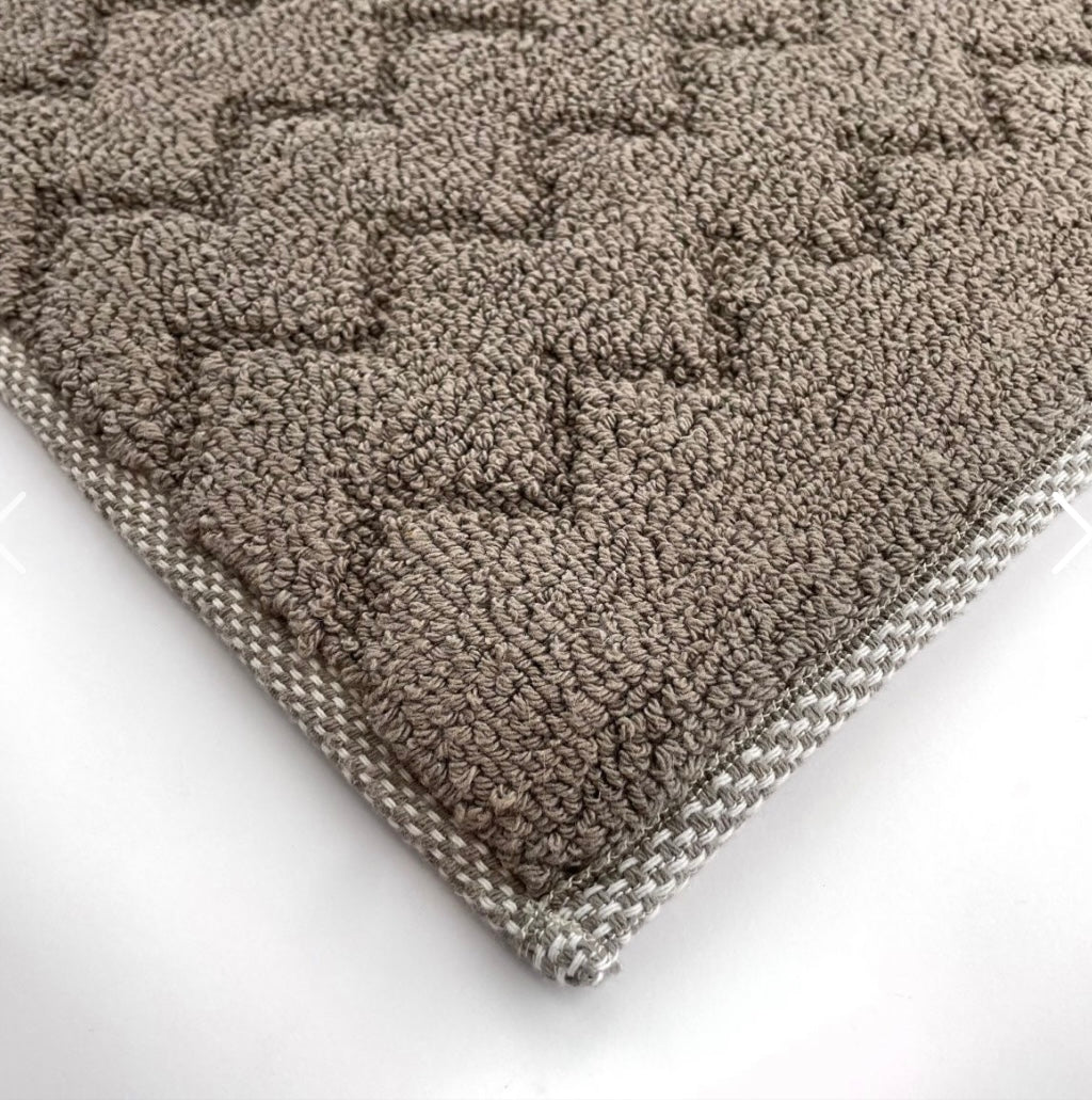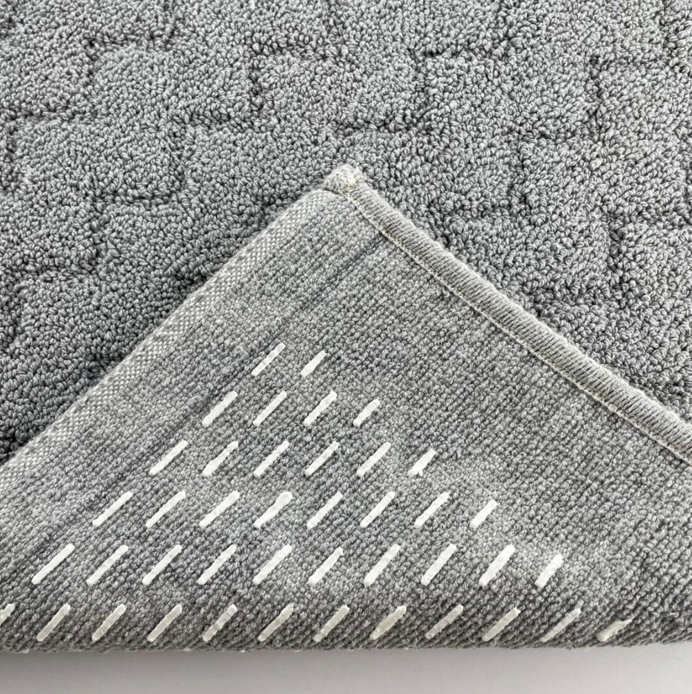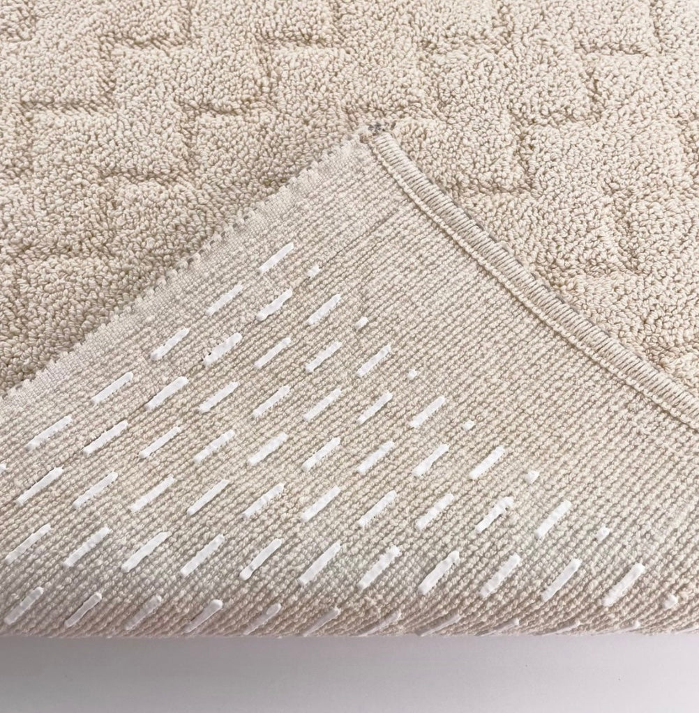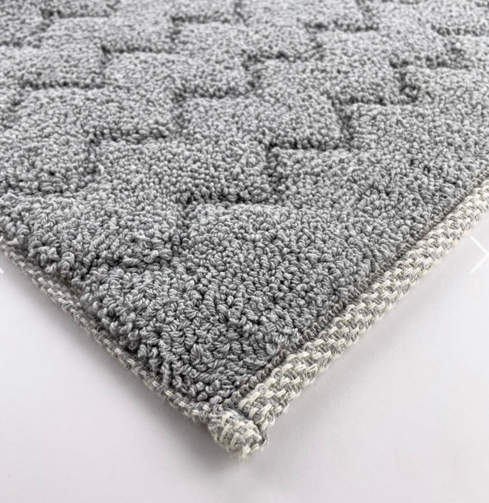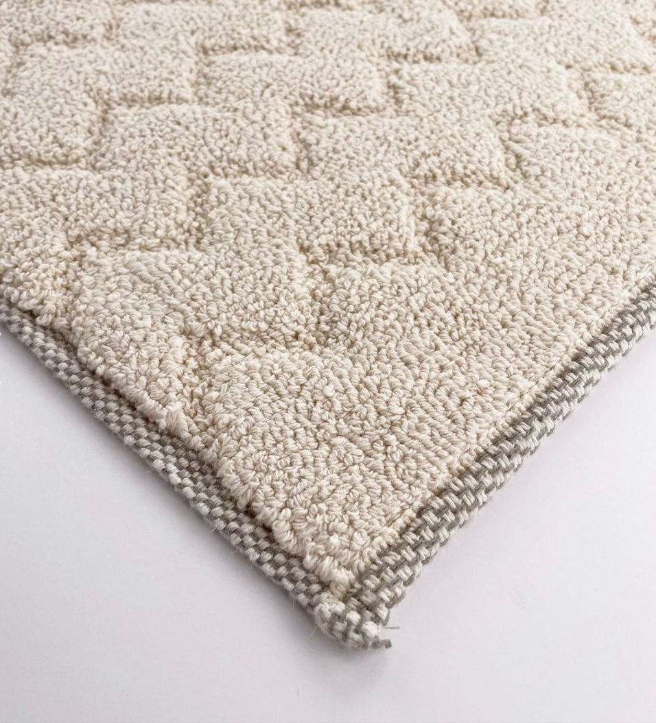 Tappeto a tinta unita in microriccio con decoro in bassorilievo.
