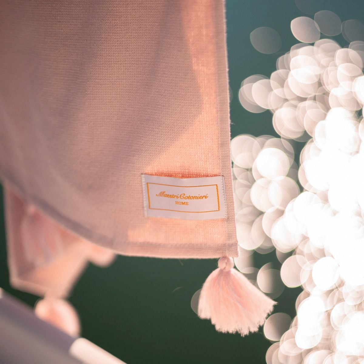 I bordi superiori e inferiori sono decorati con delle nappine che riprendono il colore del telo.