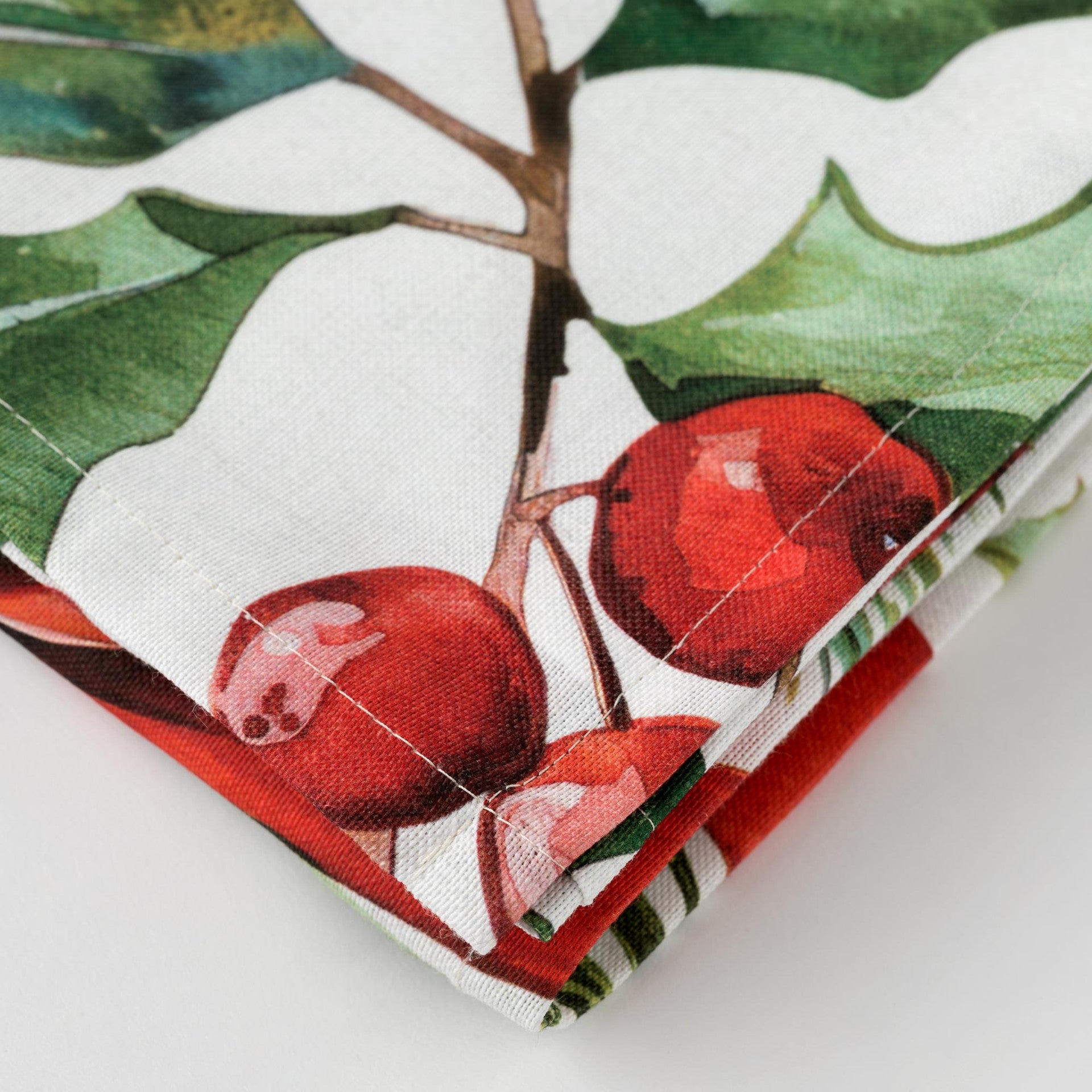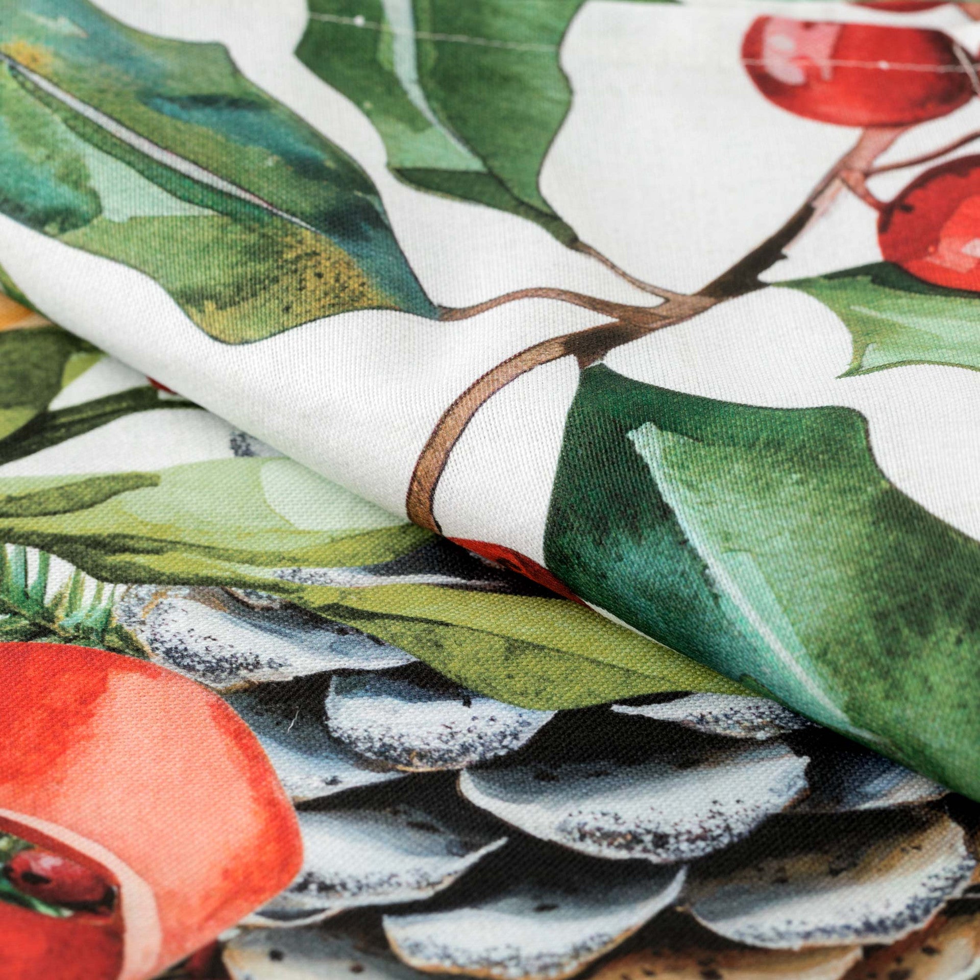 Tovaglia natalizia in cotone, decorata con una delicata stampa di bacche rosse e verdi che richiama l’atmosfera delle feste. Morbida, resistente e perfetta per aggiungere un tocco di eleganza e calore alla tavola di Natale.