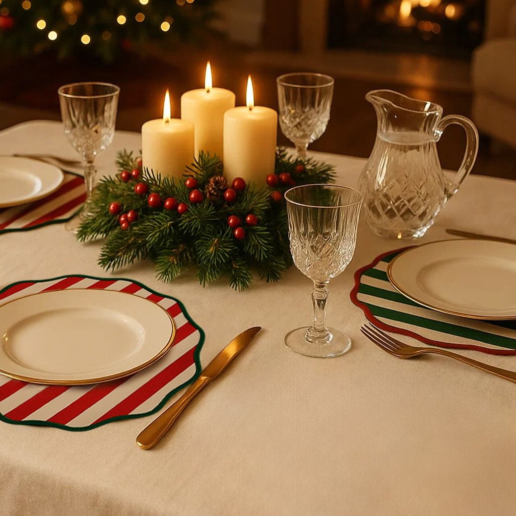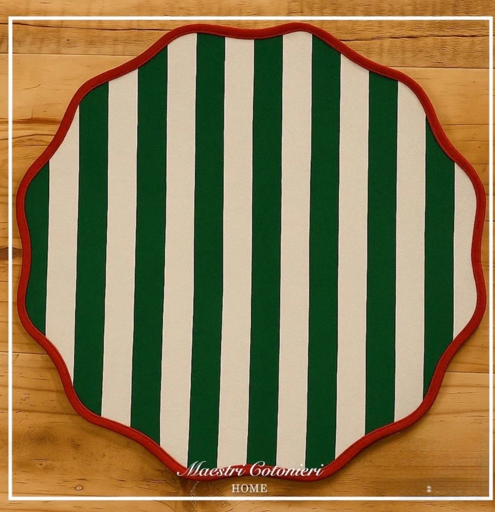 Aggiungi un tocco natalizio alla tavola con le tovagliette Maestri Cotonieri Home. Il design a righe in rosso o verde e la forma sagomata donano eleganza e creano un’atmosfera calda e festiva. Realizzate in puro cotone con imbottitura in poliestere, sono pratiche, resistenti e ideali per colazioni, pranzi o cene a tema. Perfette anche come idea regalo.