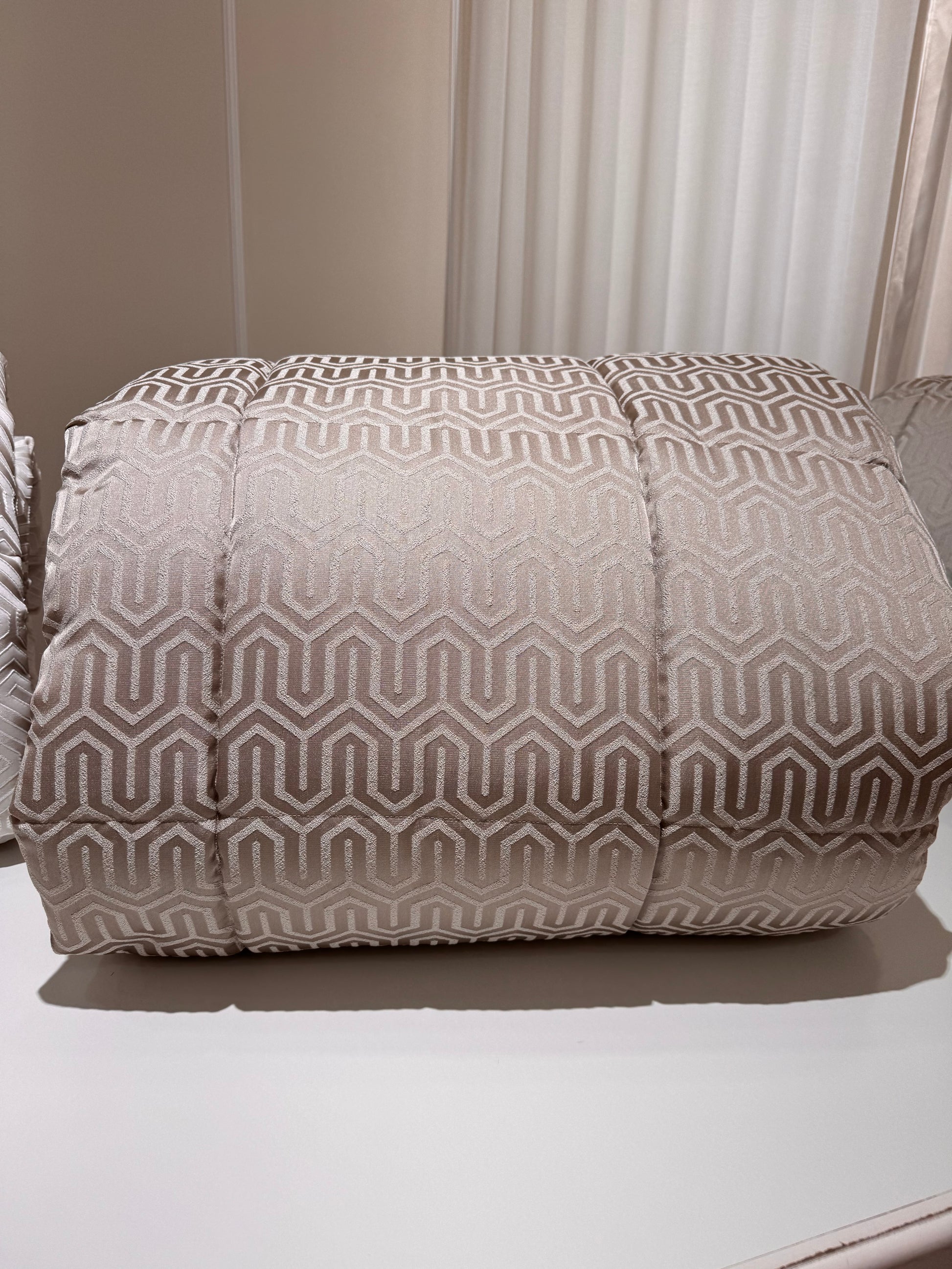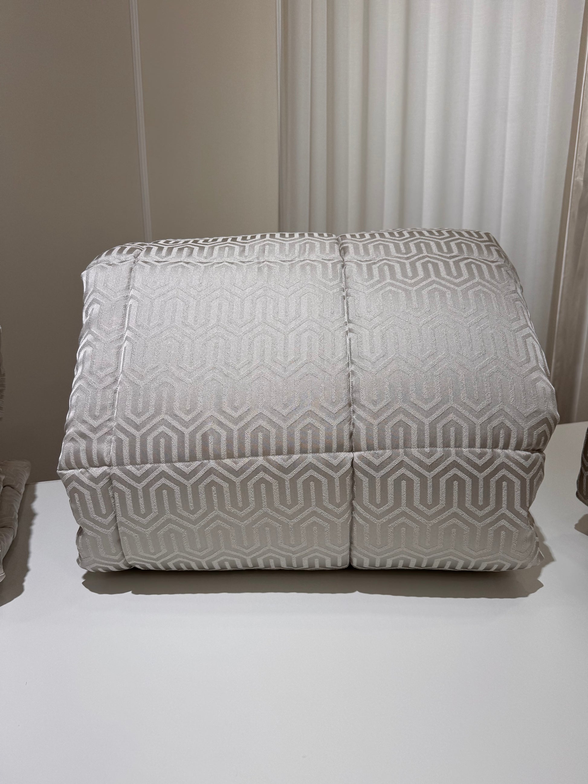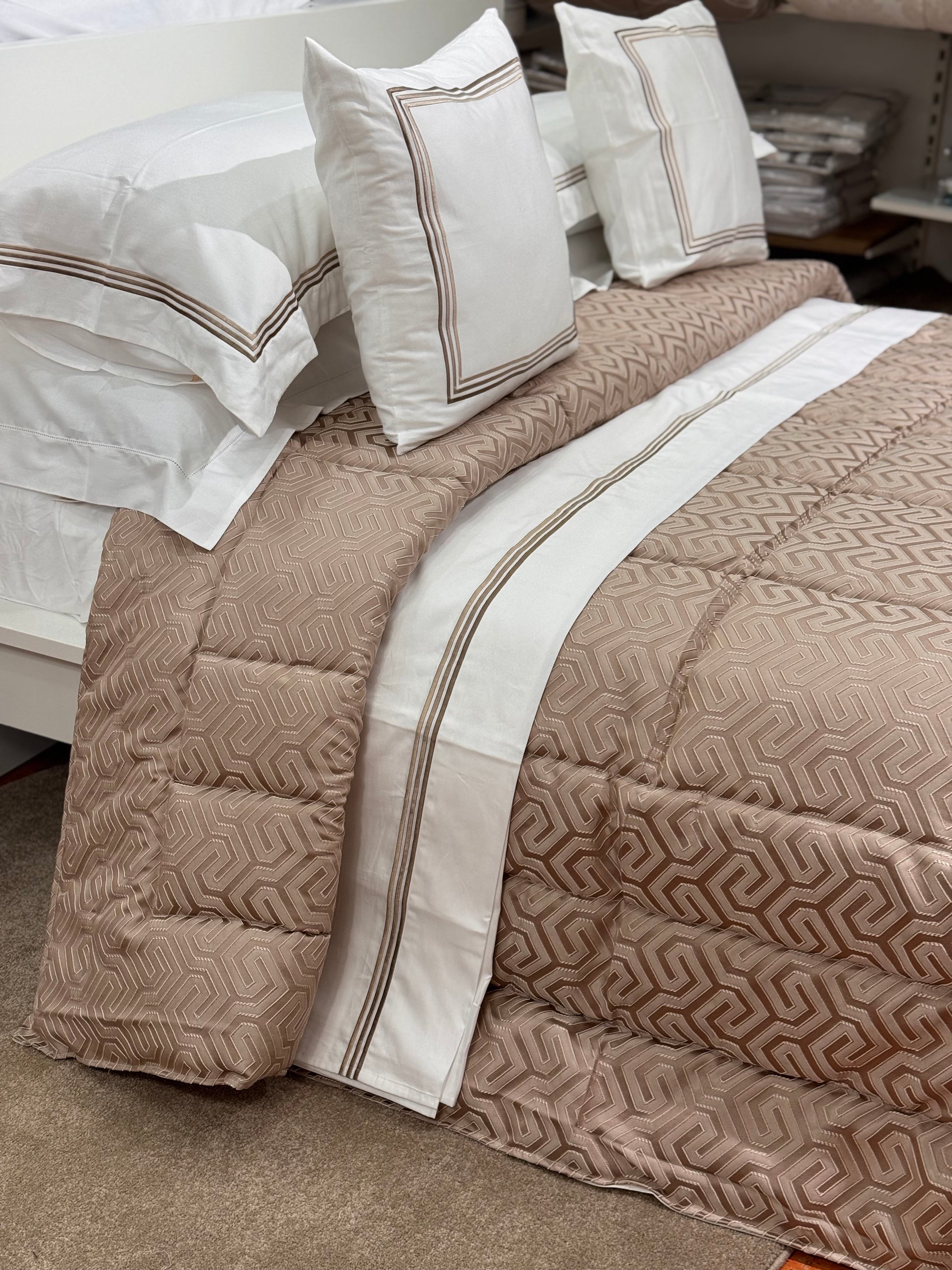 La trapunta invernale LABIRINT unisce stile e qualità grazie al suo prezioso disegno jacquard e alla morbidezza del raso.